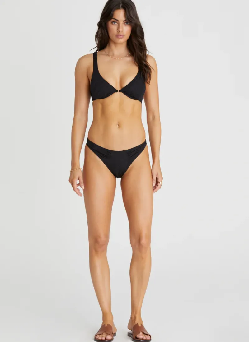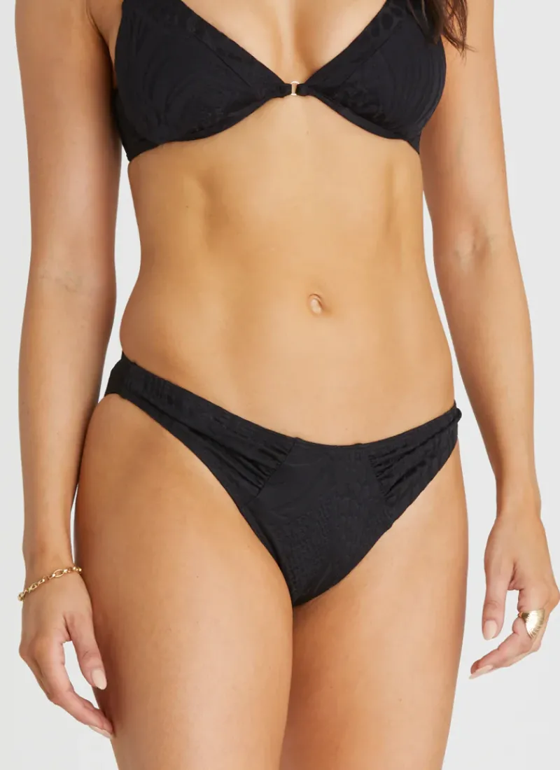 Introducing the Nero Mila Cheeky Pant by Aqua Blu Australia. Designed with gathered seam front panels and ruched detailing on the back, this piece offers a flattering and comfortable fit. The cheeky pant cut adds a touch of playfulness and is perfect for those who prefer a more adventurous swimwear look.
