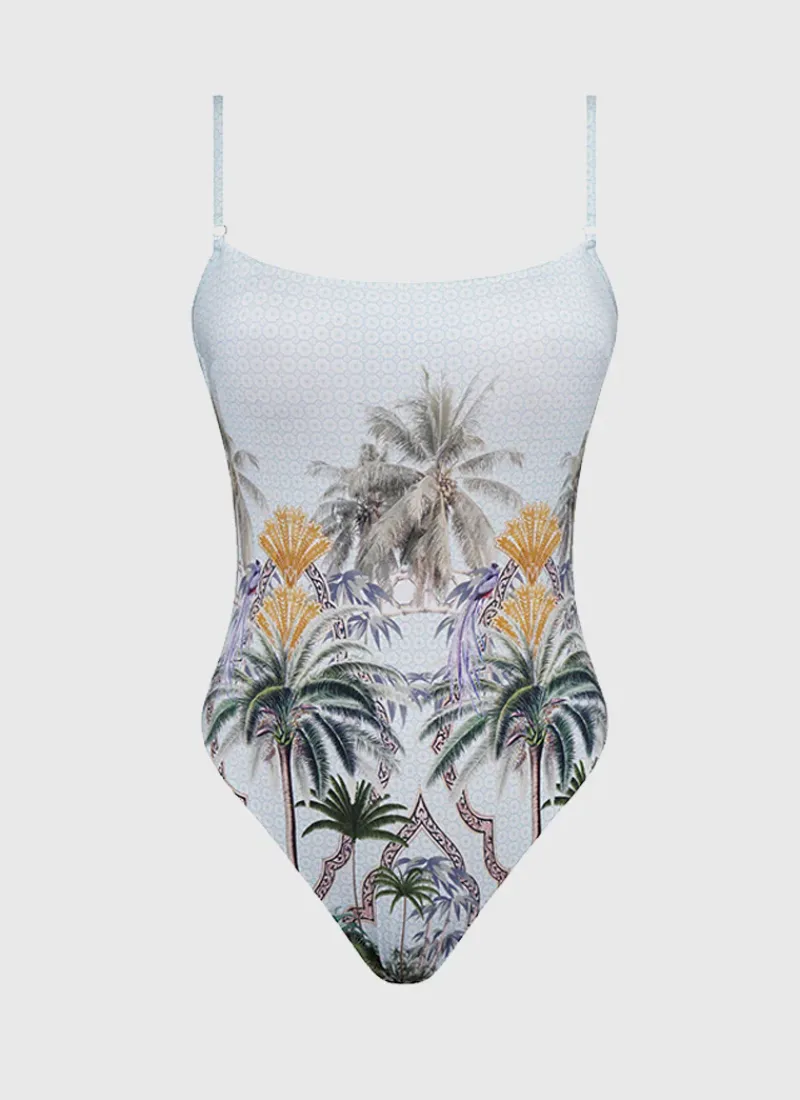 The Palmilla Gabrielle DD/E One Piece is a stunning timeless piece featuring underwire support and adjustable straps, allowing for a customizable and comfortable fit. This one piece by Aqua Blu Australia is a must-have for any beach or pool day.