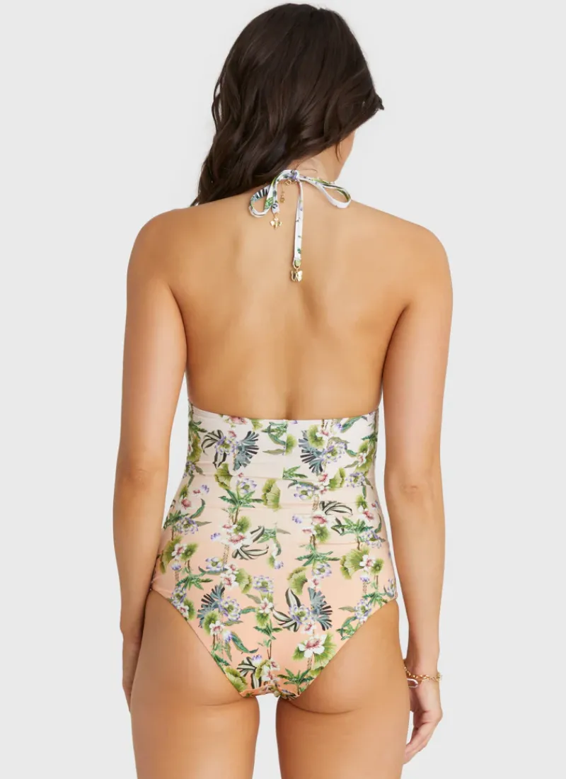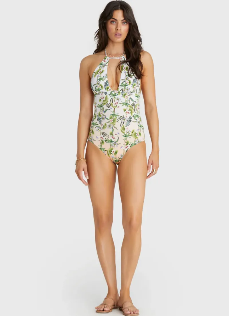 Meet the Daffodil Juno One Piece by Aqua Blu Australia, the perfect combination of style and comfort. This swimsuit features a flattering V-neck halter neck tie, placement print, square back and charm detailing. From going to beach to bar this piece is the perfect choice for the woman who values both style and function.