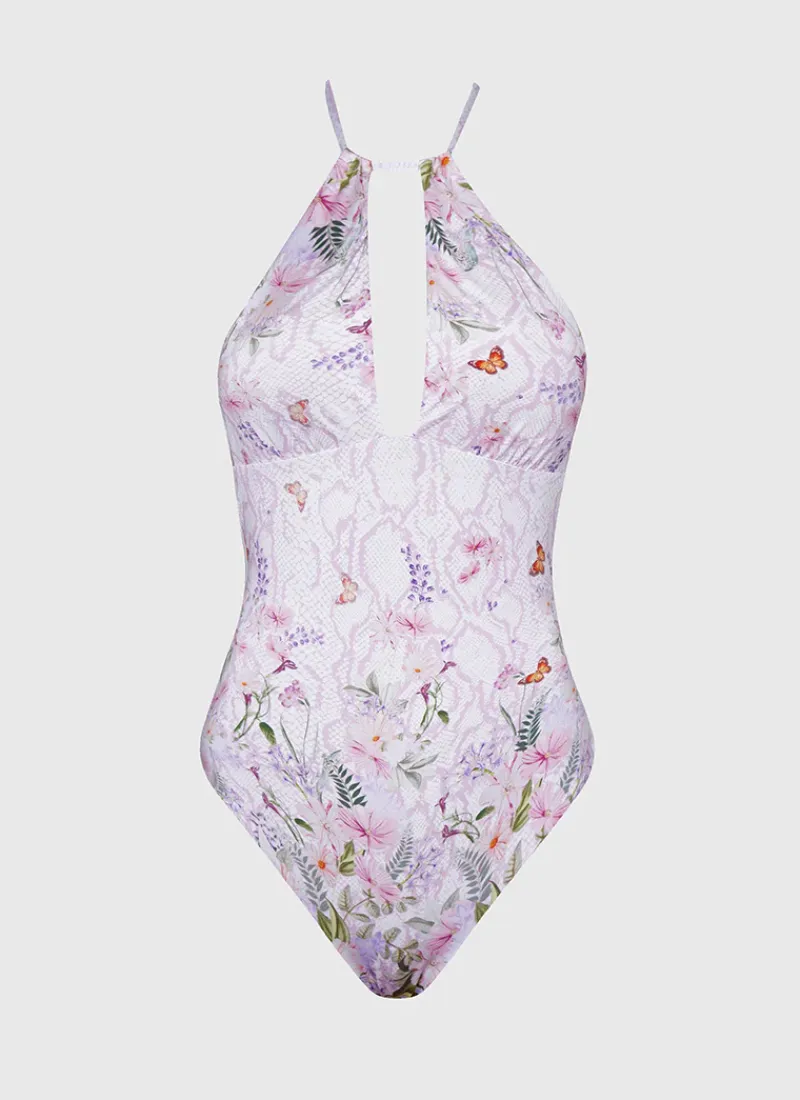 Meet the Zephyr Juno One Piece by Aqua Blu Australia, the perfect combination of style and comfort. This swimsuit features a flattering V-neck halter neck tie, placement print, square back and charm detailing. From going to beach to bar this piece is the perfect choice for the woman who values both style and function.
