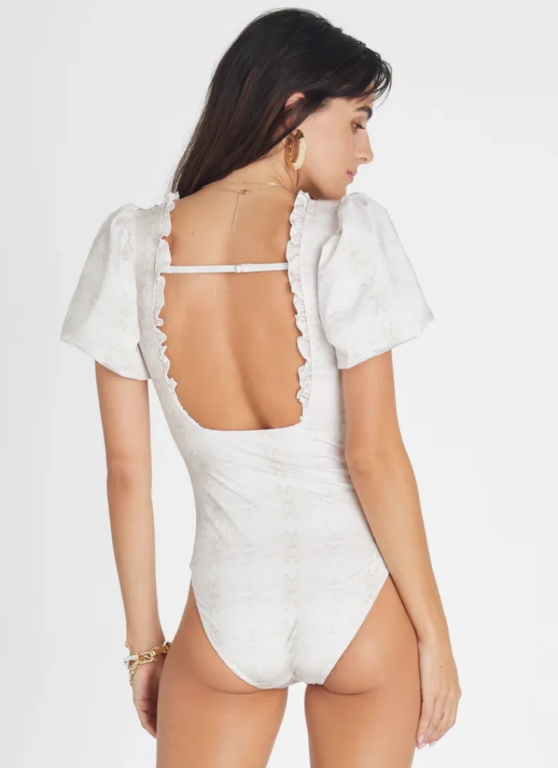 The Serpentine Sophie One Piece by Aqua Blu Australia is femininity defined, featuring a flattering square neckline, belt detail and frill trim details. The ultra-soft luxury fabric is designed to shape and support the body.