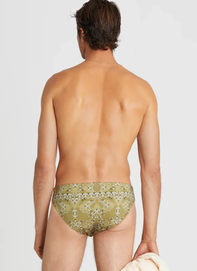 The Driftwood Racer Briefs by Aqua Blu Australia feature an adjustable draw cord and encased elastic waist, providing a comfortable and secure fit. Whether you’re hitting the beach or the pool, these briefs are a classic style that are perfect for any swimwear collection.