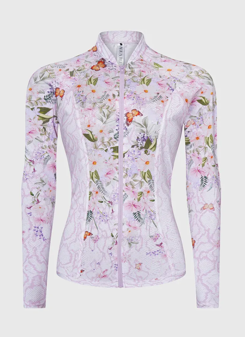 Protect yourself in style with the Zephyr Lyla Rash Guard by Aqua Blu Australia, the ultimate expression of functional and fashionable swimwear. Featuring UPF 50+ sun protection, this piece offers maximum protection, while the high neck collar and raglan sleeves provide additional coverage and support.