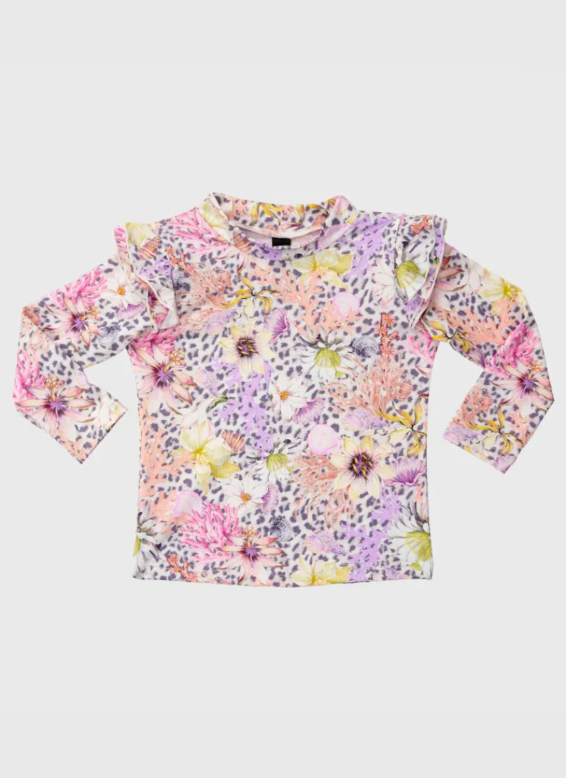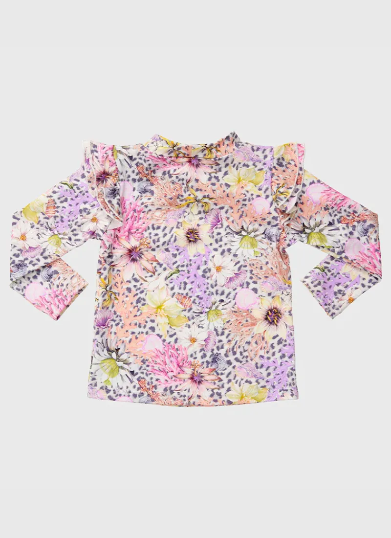 Designed to protect your child from harmful UVA and UVB rays, the Daisy Long Sleeve Rash Vest by Aqua Blu Australia is essential for those long hot summer days spent on the beach.