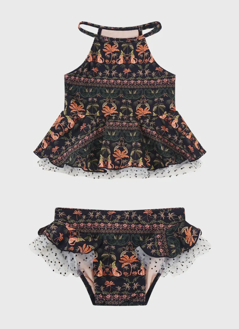 Get your little one ready for a day of fun in the sun with this playful Luxor Tankini Set by Aqua Blu Australia. The top and bottom feature multi-layer frills and polka dot tulle detailing making this set a fun addition to any child’s swim wardrobe.