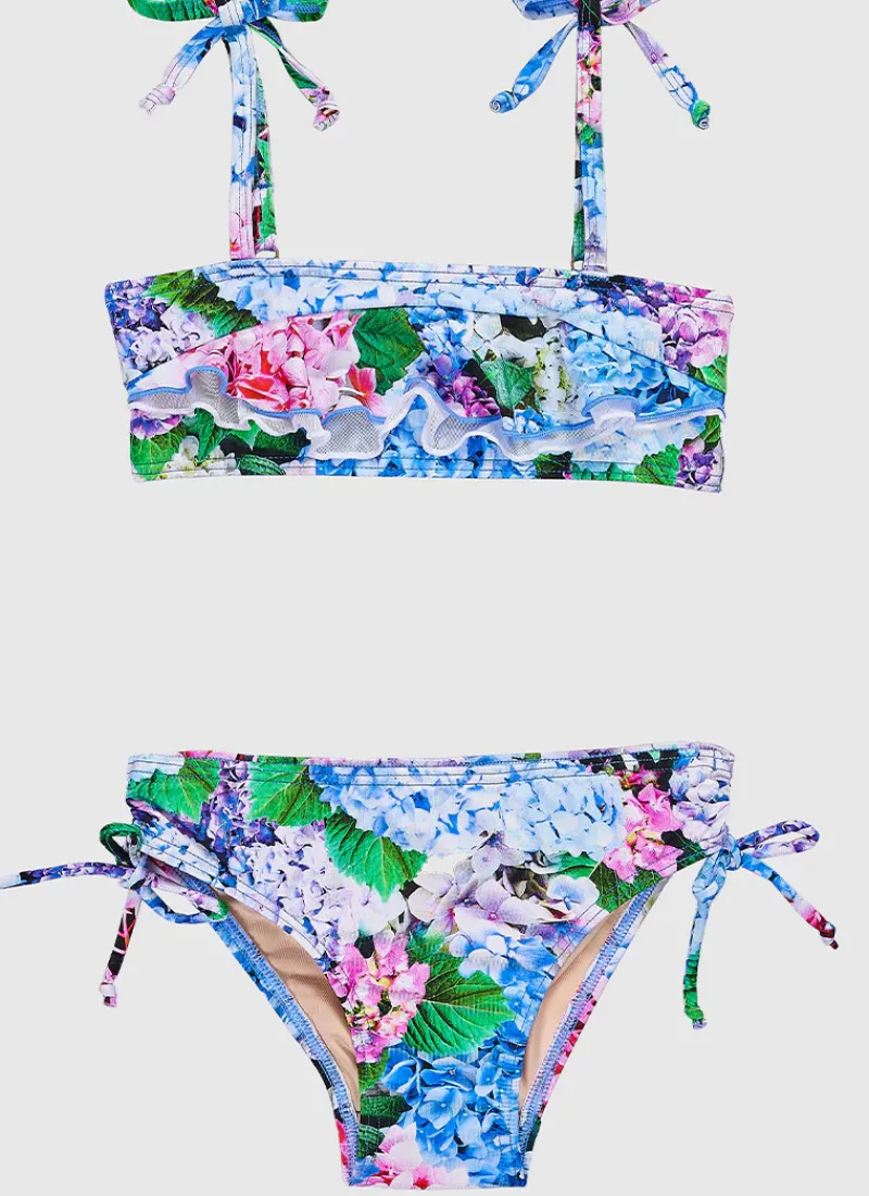 The Blossom Frill Bikini Set by Aqua Blu Australia is a super cute bikini set featuring double layer frill detail on the bikini top and faux tie side details on the bottoms.