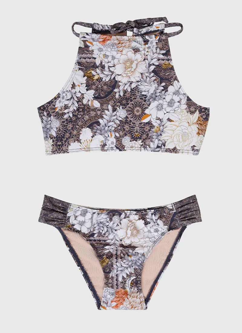 The Kismet Halter Bikini Set by Aqua Blu Australia is a super cute bikini set featuring a halter neck top and is paired with classic gathered side bottoms.