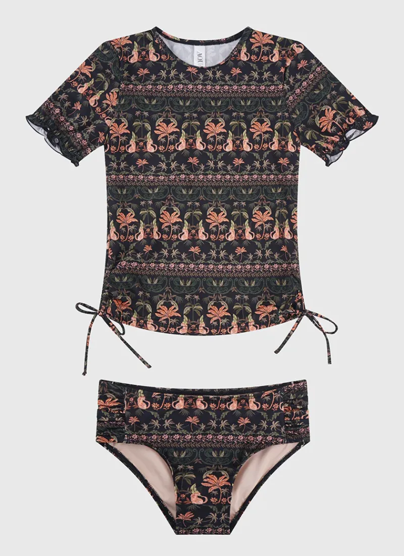 Aqua Blu Australia’s Luxor Short Sleeve Rash Vest Set is the perfect choice for parents who want to keep their child safe while they play in the sun. With a UPF 50+ Sun protection rating, playful puff sleeves and gathered bottoms, this set is a must-have for any child’s summer wardrobe.