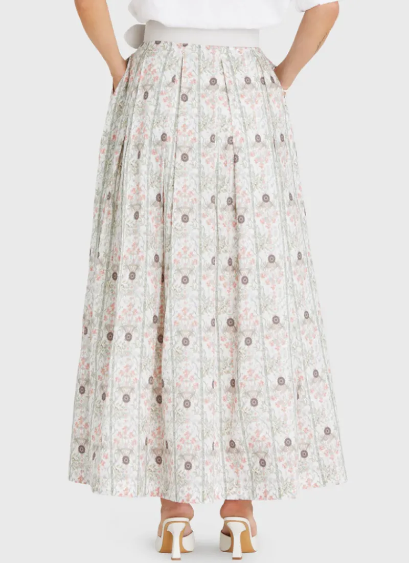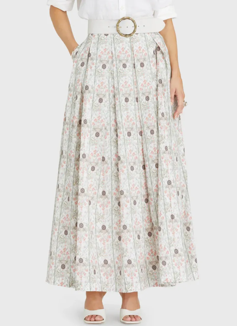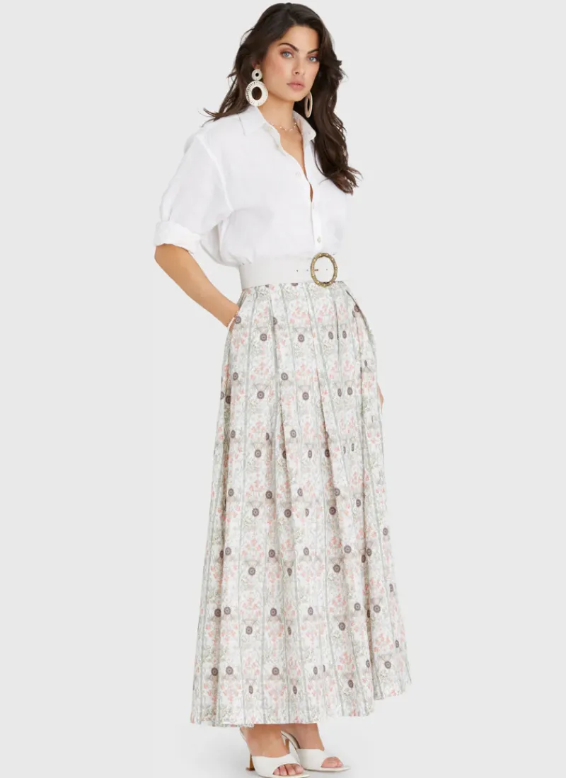 The Amaryllis Annette Maxi Skirt by Aqua Blu Australia is a pleated floor-skimming silhouette, that will become a wardrobe essential for seasons to come. This high waist skirt has a removable waist belt and side pockets and is designed to move fluidly with the body.