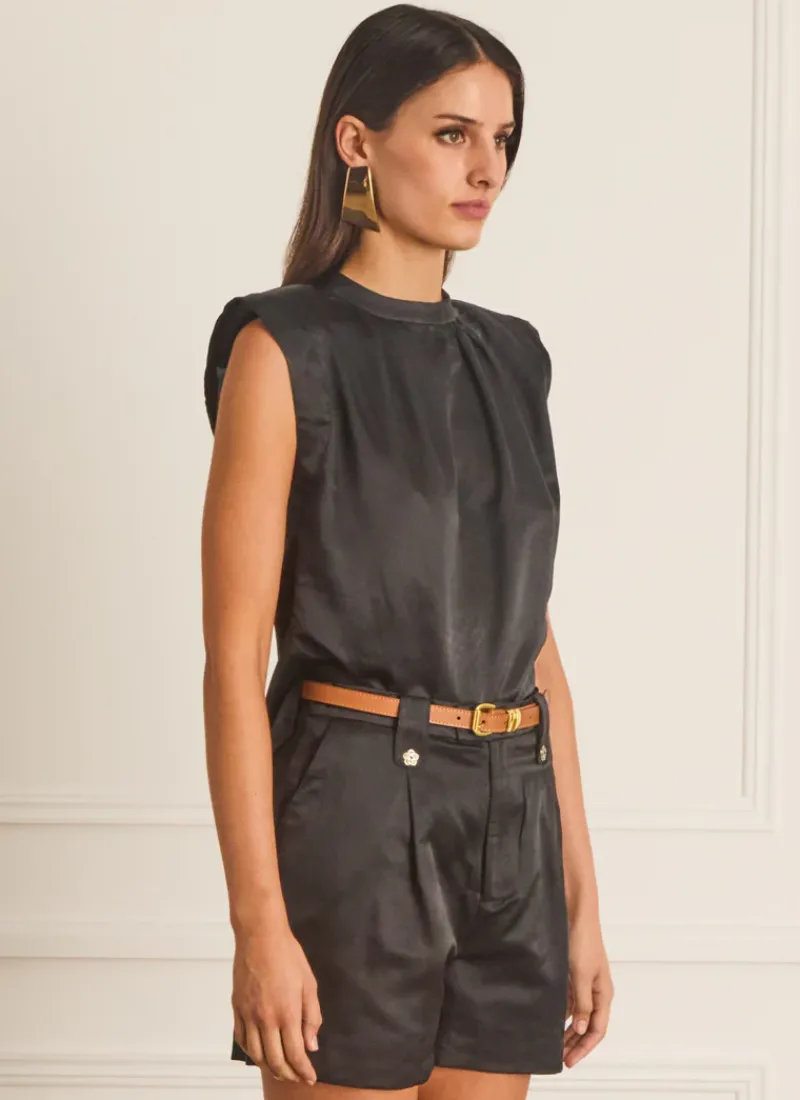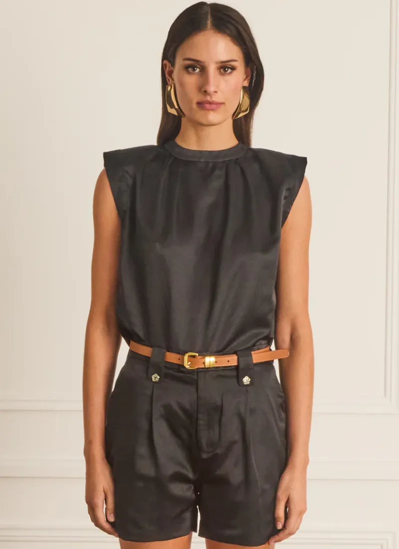 An elevated and refined version of the classic t-shirt, the Sparrow Klara Top by Aqua Blu Australia is the perfect modern and chic look for any occasion. Crafted from premium fabrication, this top features shoulder pads and front pleats that create a relaxed yet tailored fit.