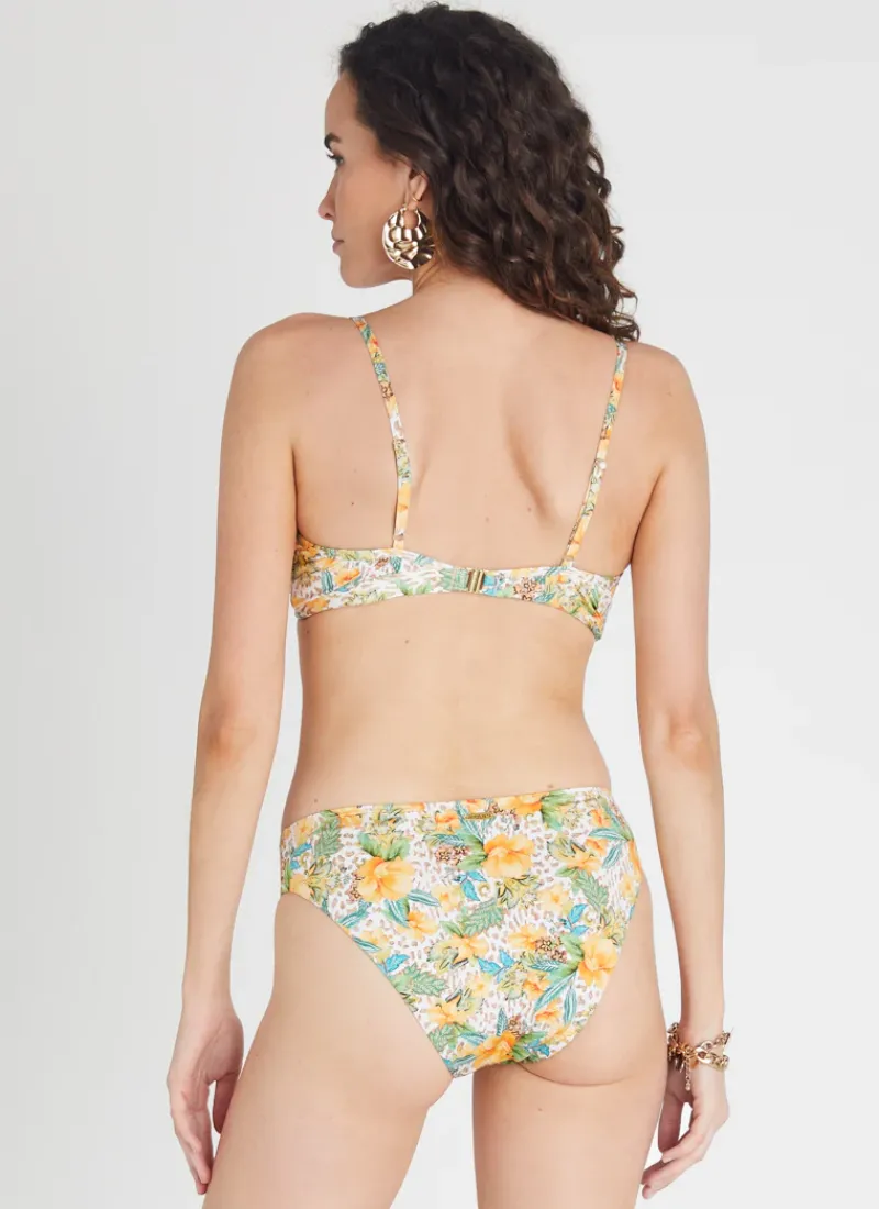The Dahlia Olivia Bikini Top by Aqua Blu Australia embodies minimalist design with wide adjustable shoulder straps and back clasp. The luxurious textured jacquard, removable cups and underwire support is designed to shape and support the body.