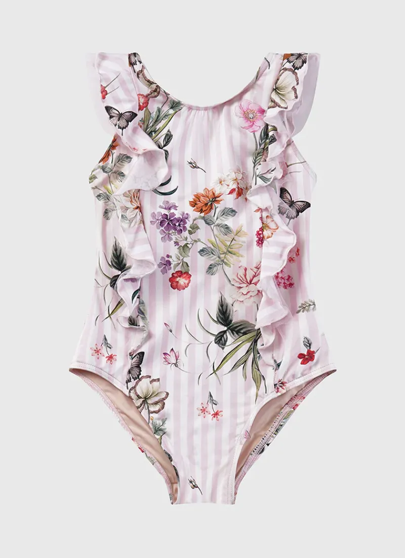 The Flutter Frill One Piece by Aqua Blu Australia is an essential fashion one piece style with a bow detail and front and should frills, perfect for a day by the pool.