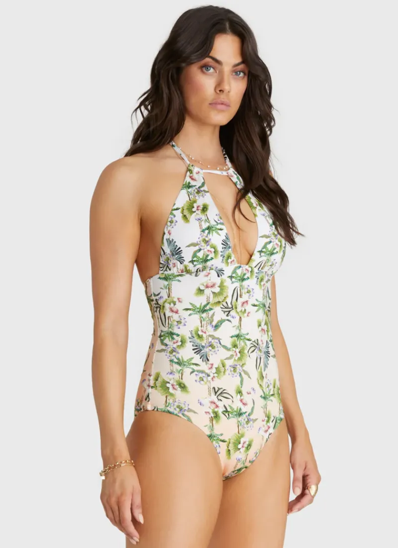 Meet the Daffodil Juno One Piece by Aqua Blu Australia, the perfect combination of style and comfort. This swimsuit features a flattering V-neck halter neck tie, placement print, square back and charm detailing. From going to beach to bar this piece is the perfect choice for the woman who values both style and function.