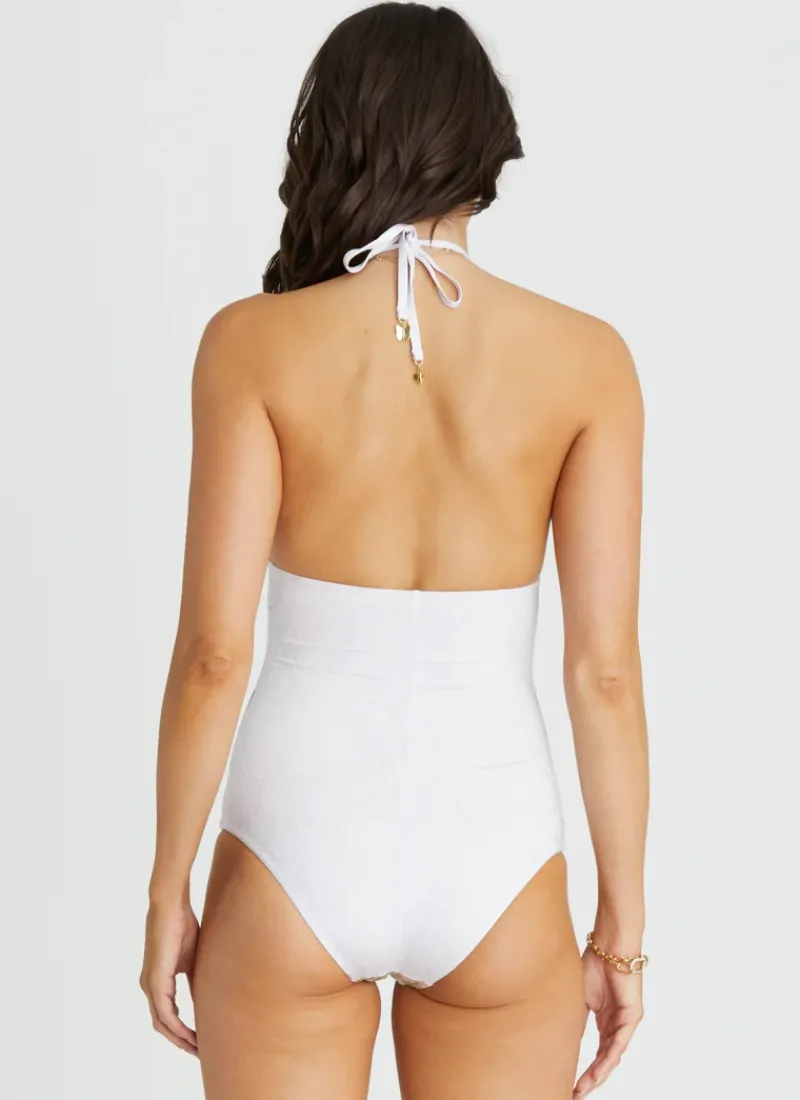Meet the Zephyr Juno One Piece by Aqua Blu Australia, the perfect combination of style and comfort. This swimsuit features a flattering V-neck halter neck tie, placement print, square back and charm detailing. From going to beach to bar this piece is the perfect choice for the woman who values both style and function.