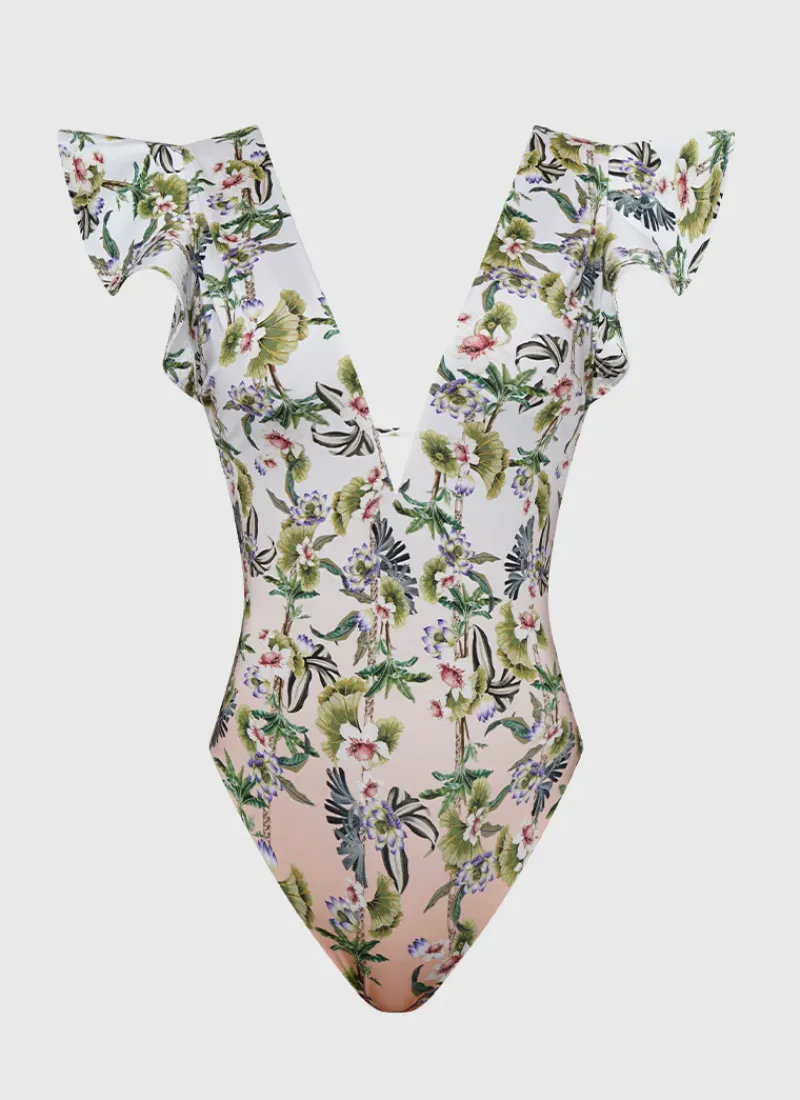 Get ready to make a statement at the beach with our Daffodil Mackenzie One Piece by Aqua Blu Australia. Featuring dual frill sleeves, a flattering and feminine V-neckline and a square back design, this swimsuit is a must-have for any fashion-forward swimwear collection.