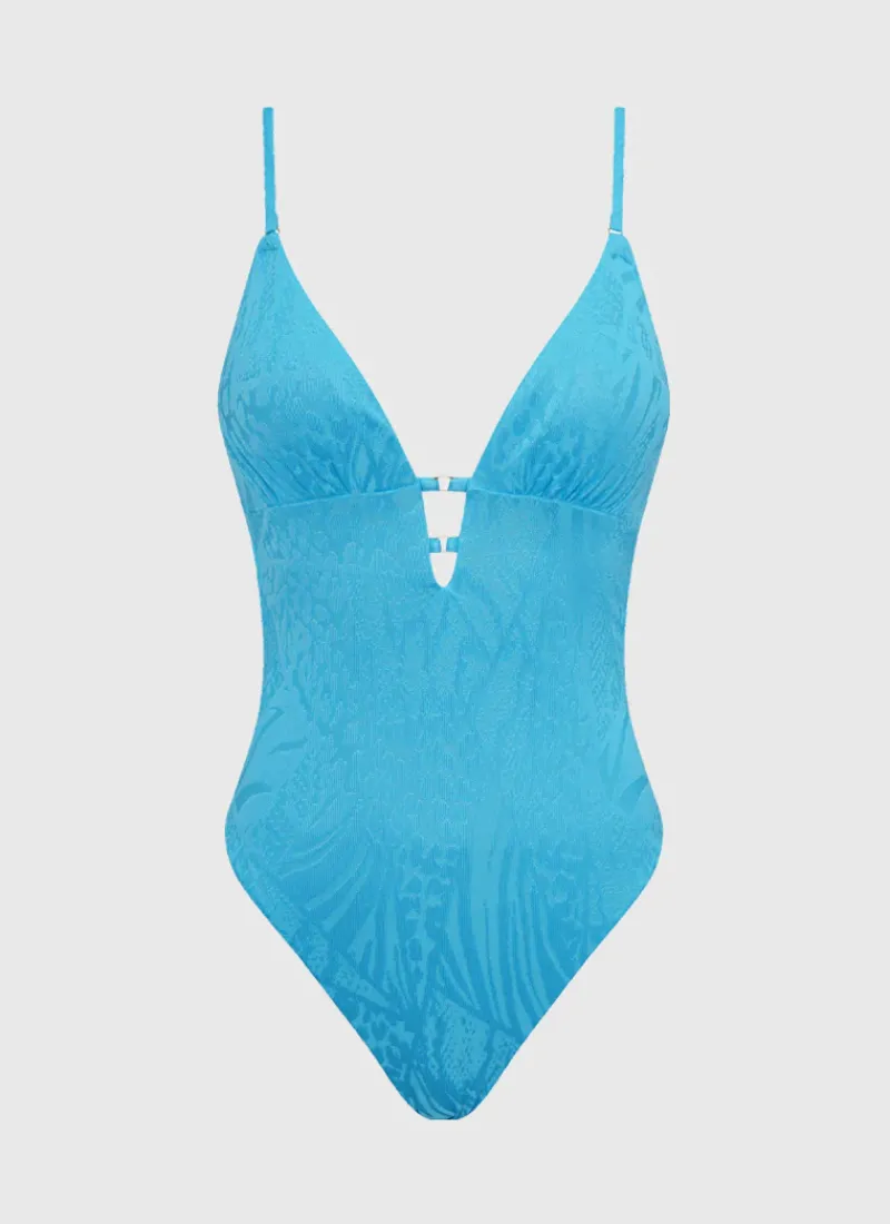 Experience the elevated Lapis Michelle One Piece by Aqua Blu Australia. This piece features a low V-neck design, scoop back and ring detail at the front for a touch of glamour. Whether lounging poolside or enjoying a day at the beach, this one piece is the perfect expression of understated elegance and opulent comfort.