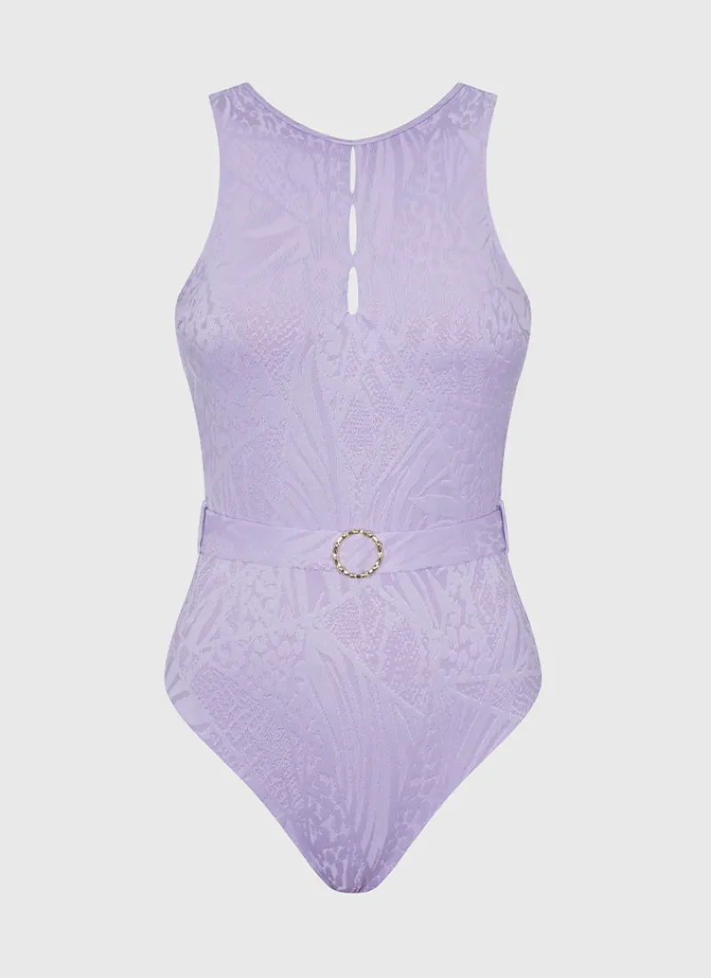 Featuring a high-neck front cut-out design with a scoop back, the Viola Prudence One Piece by Aqua Blu Australia is designed to flatter and enhance. The removable cups and elastic shelf support offer comfort and versatility, while the removable belt and metal clasp detail add a touch of glamour and sophistication.