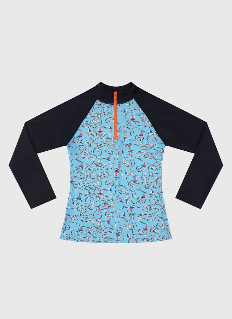 Protect your youngster in the sun and surf with the Bowline Long Sleeve Rash Vest by Aqua Blu Australia. With a UPF 50+ Sun Protection Rating, you can be sure they’re covered for all-day beach adventures.