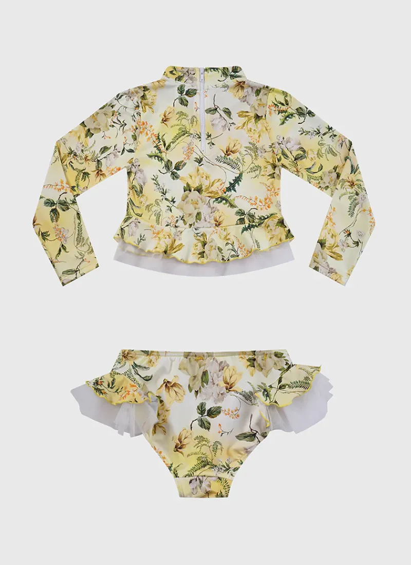 Get your child ready for a day of fun in the sun with the Holly Long Sleeve Rash Vest Set by Aqua Blu Australia. With a UPF 50+ Sun Protection Rating, the set includes a full-length sleeve rash vest and matching frill side bottoms so your kids can enjoy endless hours of water activities with ease and comfort.