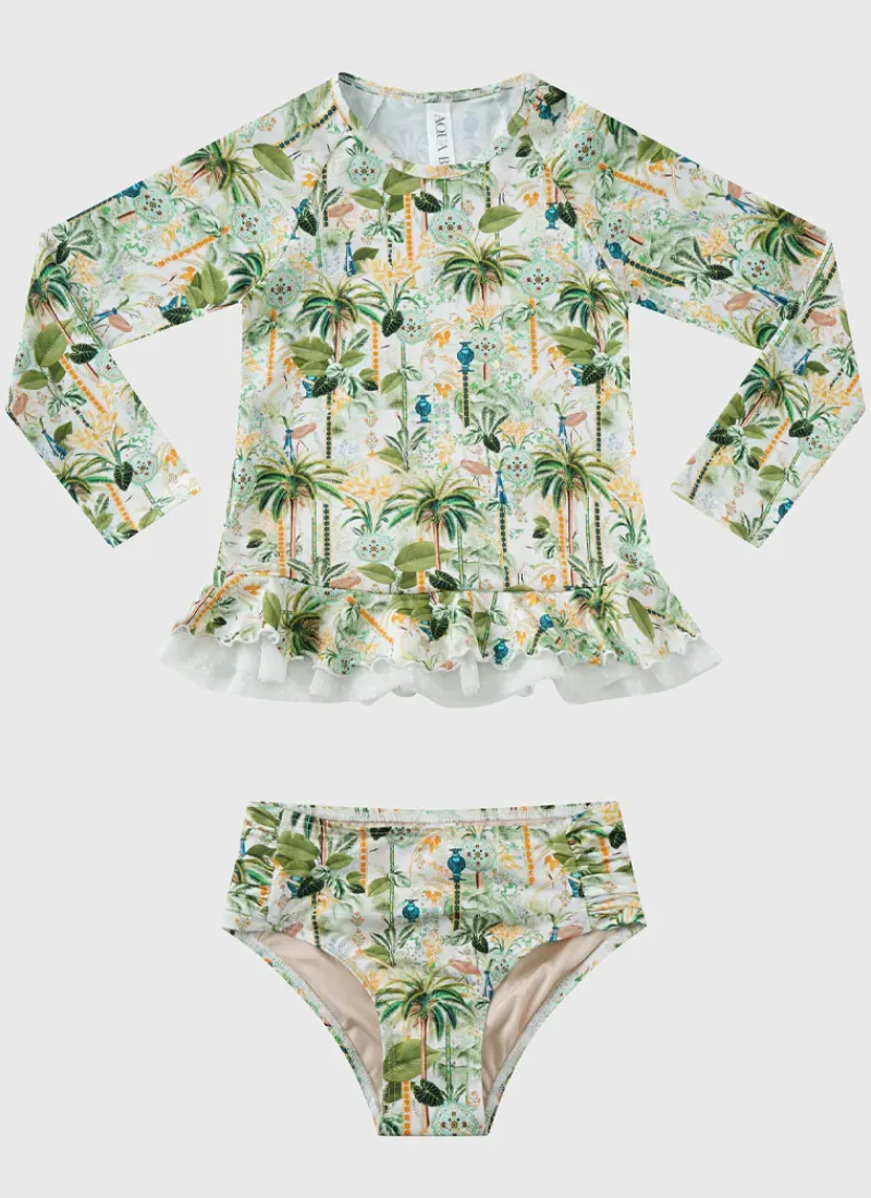Get your child ready for a day of fun in the sun with the Madagascar Long Sleeve Rash Vest Set by Aqua Blu Australia. With a UPF 50+ Sun Protection Rating, the set includes a full-length sleeve rash vest and matching gathered side bottoms so your kids can enjoy endless hours of water activities with ease and comfort.