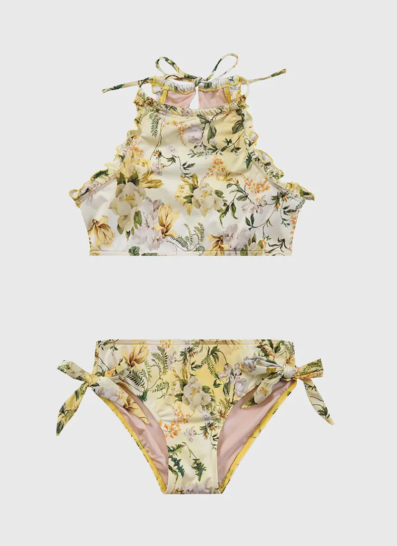 The Holly Halter Neck Bikini Set by Aqua Blu Australia is the ultimate bikini set for your active teen featuring a high neck design and paired with classic gathered tie side bottoms.