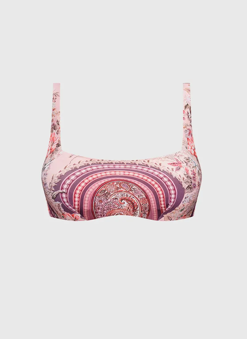 The Periwinkle Norah D/DD Cup Top by Aqua Blu Australia features removable cups and underwire support for customizable comfort and adjustable straps and a back clasp for the perfect fit. This bikini top is crafted from premium quality materials and with its sleek and sophisticated design, it is the perfect choice for any beach day or poolside lounging.