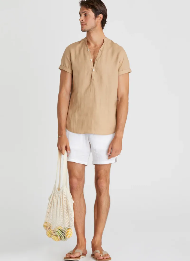 Elevate your wardrobe with the Caramel Aaron Shirt by Aqua Blu Australia. Featuring a Henley button front and sleek mandarin collar that adds a touch of sophistication, while the relaxed fit and side split provide both comfort and style. The filigree buttons are the perfect finishing touch to look effortlessly stylish and comfortable in all day long.
