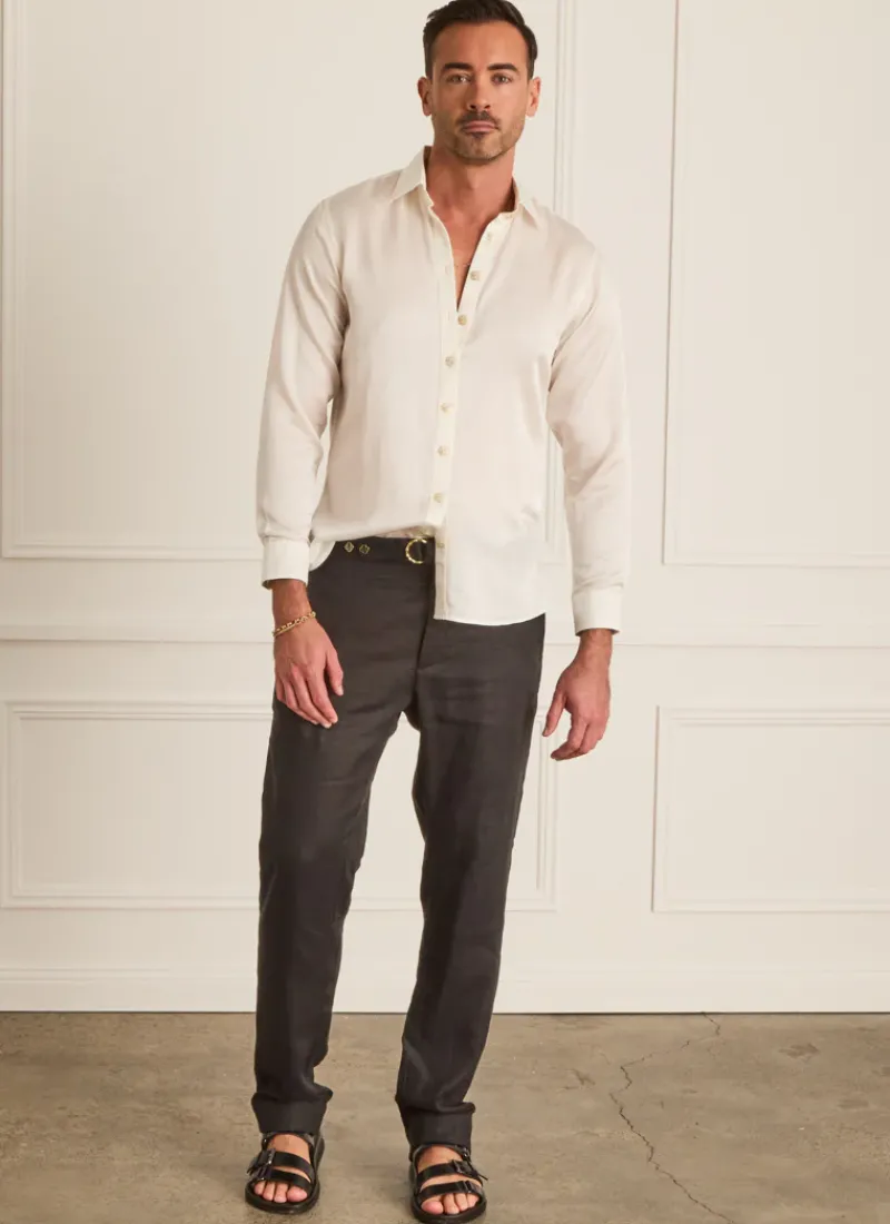 The Starling Blake Shirt by Aqua Blu Australia is crafted from the finest silk blend with a classic collar and camelia buttons. Exquisitely tailored in a relaxed fit, this button-down shirt boasts a timeless and sophisticated style.